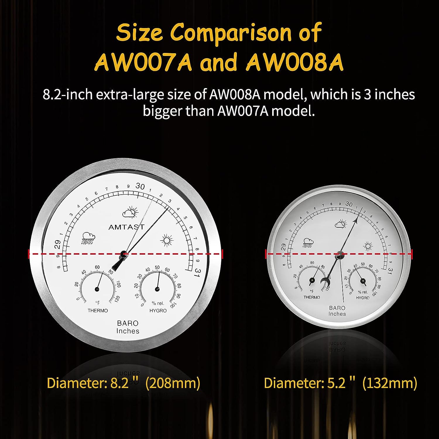 Find your new AMTAST 5.2 Diameter Dial Type Barometer Thermometer Hygrometer 3 in 1 Multifunction, Pure Mechanical Dial Barometric Pressure Weather Station (Imperial) AW007A on this page.