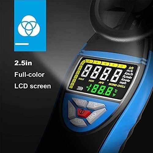 The Digital Anemometer Wind Meter Gauge features a back-lit colored LCD display that automatically turns on when the meter is activated. This eliminates the struggle of reading measuring data in bright sunlight or darkness. Additionally, the display is highly visible due to the color backlight, ensuring easy reading.