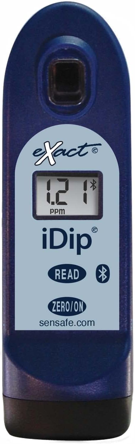 Discover the Exact Industrial Test Systems Exact 486101 iDip Photometer, Blue, a user-friendly and high-quality water testing solution. This innovative product incorporates advanced technologies to offer faster, safer, and more precise water testing results without the need for color matching. With a digital readout and compatibility with the eXact iDip app for iOS and Android devices, this photometer provides accurate and reliable detection ranges for tests such as total alkalinity, free chlorine, and total chlorine. The kit includes the photometer, cleaning brush, instruction manual, and test strips for various parameters. Manufactured in the USA with a focus on reproducibility, accuracy, and traceability, this product ensures the highest quality standards for your water testing needs.