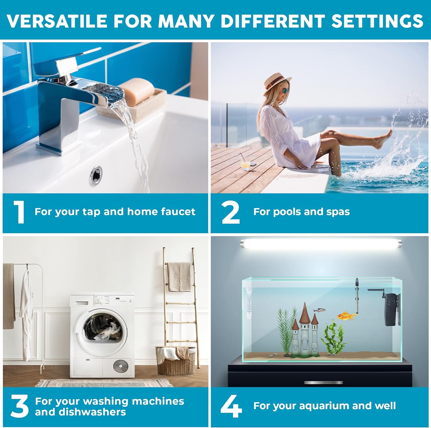 Application Pools, spas, hot tubs, taps, well water, dishwashers, showers