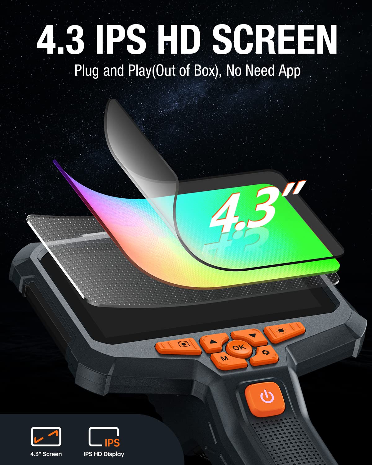 See the Inspection Camera, Dual Lens Inspection Camera with Light, NTS430 Teslong Borescope, IP67 Waterproof Flexible Cable Sewer Camera, 1080P HD Borescope Inspection Camera with 7 LED Lights-16.4Ft in detail.