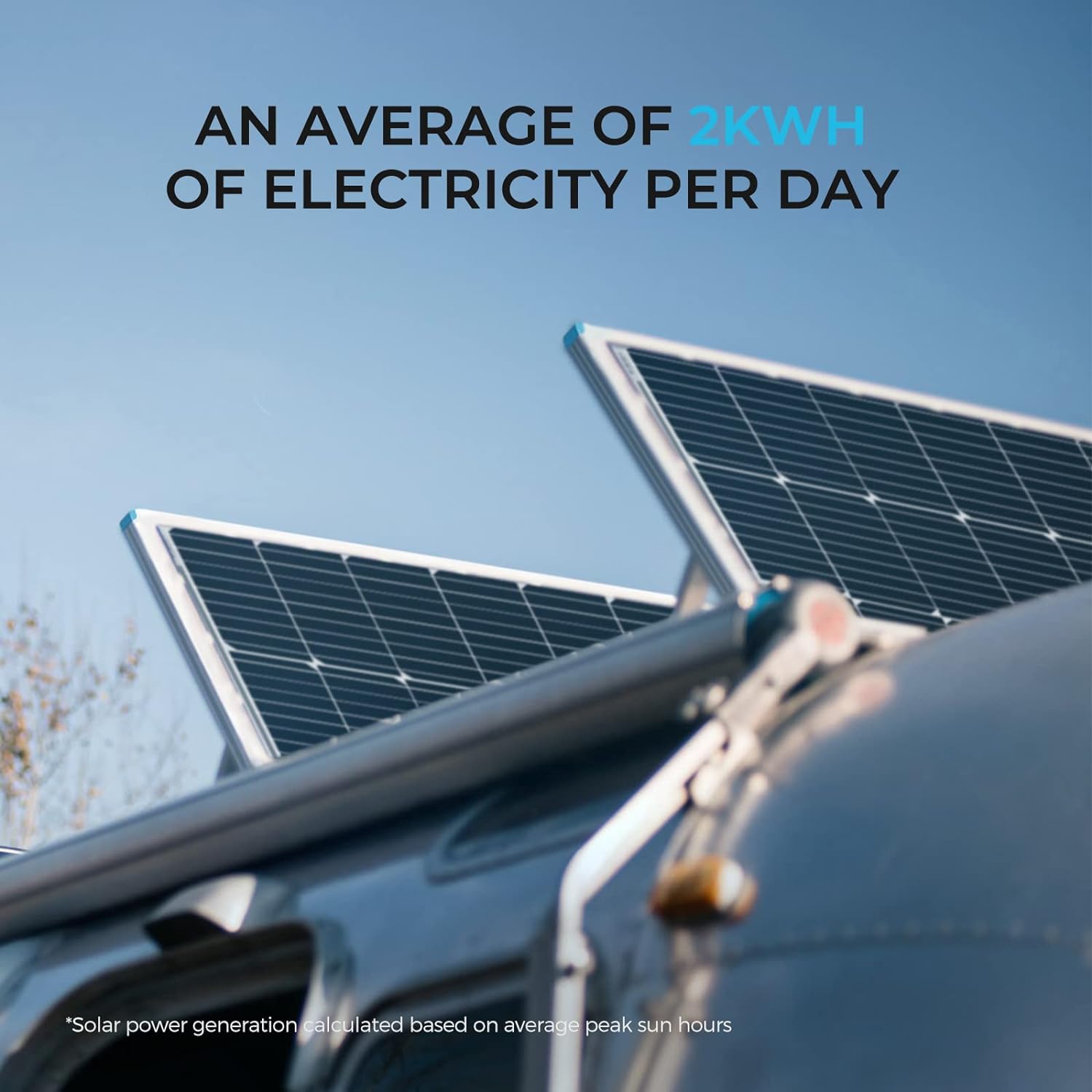 The 400W Solar Panel Starter Kit generates an average of 2kWh of electricity per day, based on 5 hours of direct sunlight. This efficient performance ensures a reliable power supply for your home or RV.